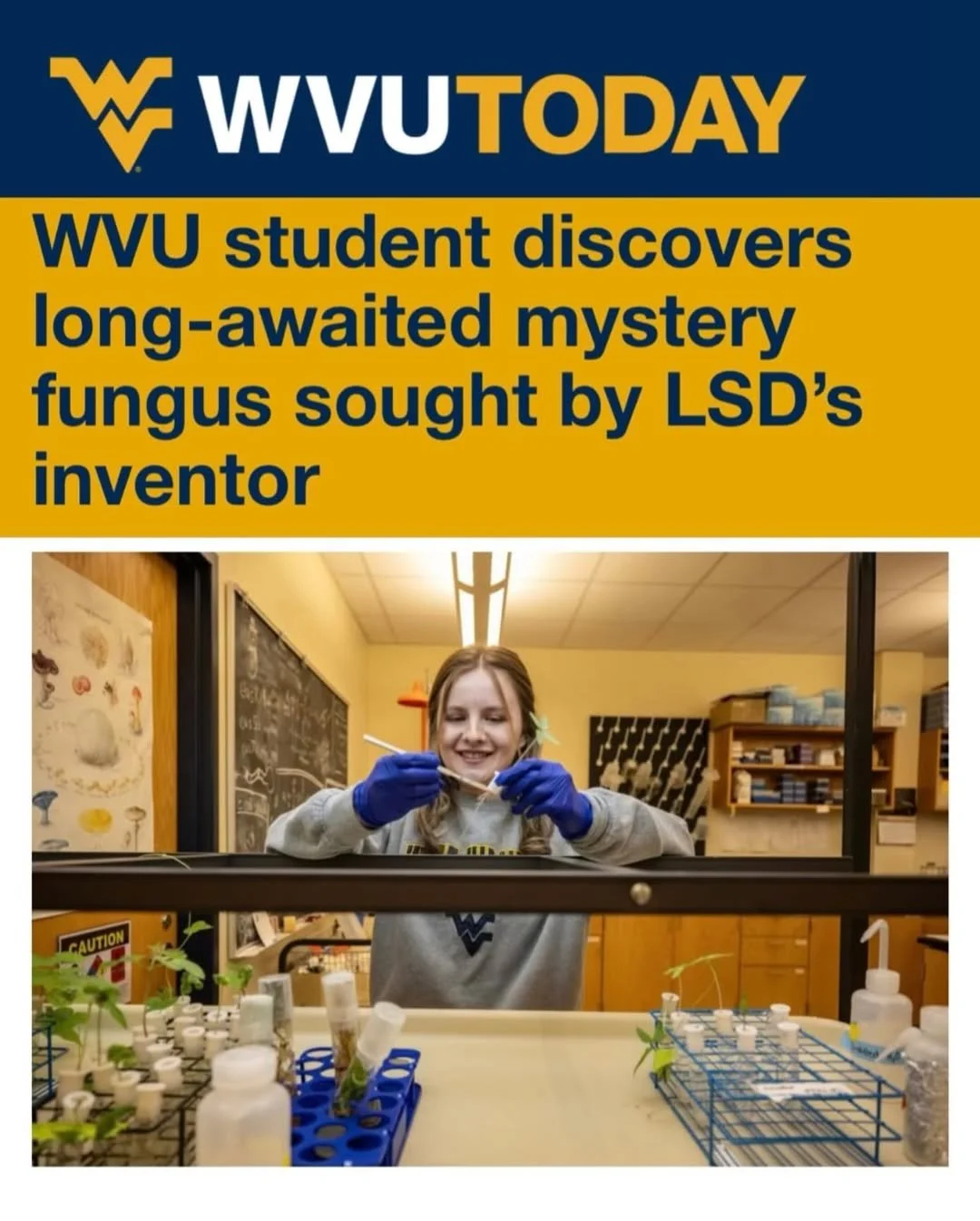 Full story: https://wvutoday.wvu.edu/stories/2025/06/02/wvu-student-makes-long-awaited-discovery-of-mystery-fungus-sought-by-lsd-s-inventor